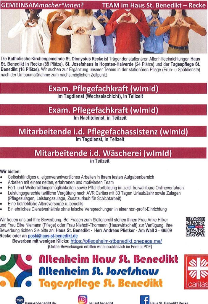 Stellenanzeige unter https://www.facebook.com/Haus-St-Benedikt-Recke